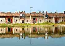 广州大江埔古村,村中建筑悉数坐北向南,大部分是砖、木、石结构,悬山顶式。村前五间祠尝临着月牙开的大池塘,其后连接民居,祠堂、民居、书舍构成的村落成一棋盘式布局。五间祠堂皆砌成镬耳山墙,三进三间,分别为能缘公祠、武馀公祠、怀山公祠、乐秋公祠和居贤公祠。 >> 详细介绍