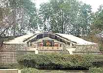 福建严复墓,清宣统二年(1910年),严复生前亲自择地营造,内葬有严复妻王氏。东北向,风字形,土石结构,五层墓埕,占地面积1680平方米,环以围墙。墓前石墙护卫墙中洞开二门,门上覆以石构歇山顶,沿门可拾阶而上至封顶。 >> 详细介绍
