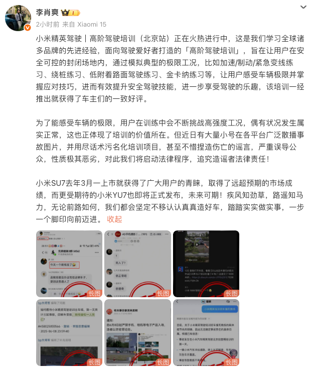 小米汽车辟谣高阶驾驶培训车祸:已启动法律程序