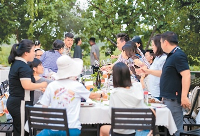 游客在“葡萄酒也旅行”主题活动上欢聚品酒。受访者供图